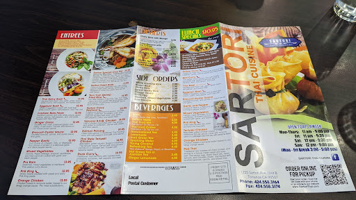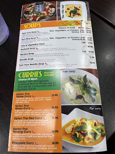Sartori Thai Cuisine offers a vibrant and authentic menu that highlights the bold flavors of traditional Thai cuisine. Whether you're stopping by for a casual lunch or a hearty dinner, the diverse selection of dishes ensures there’s something for everyone.